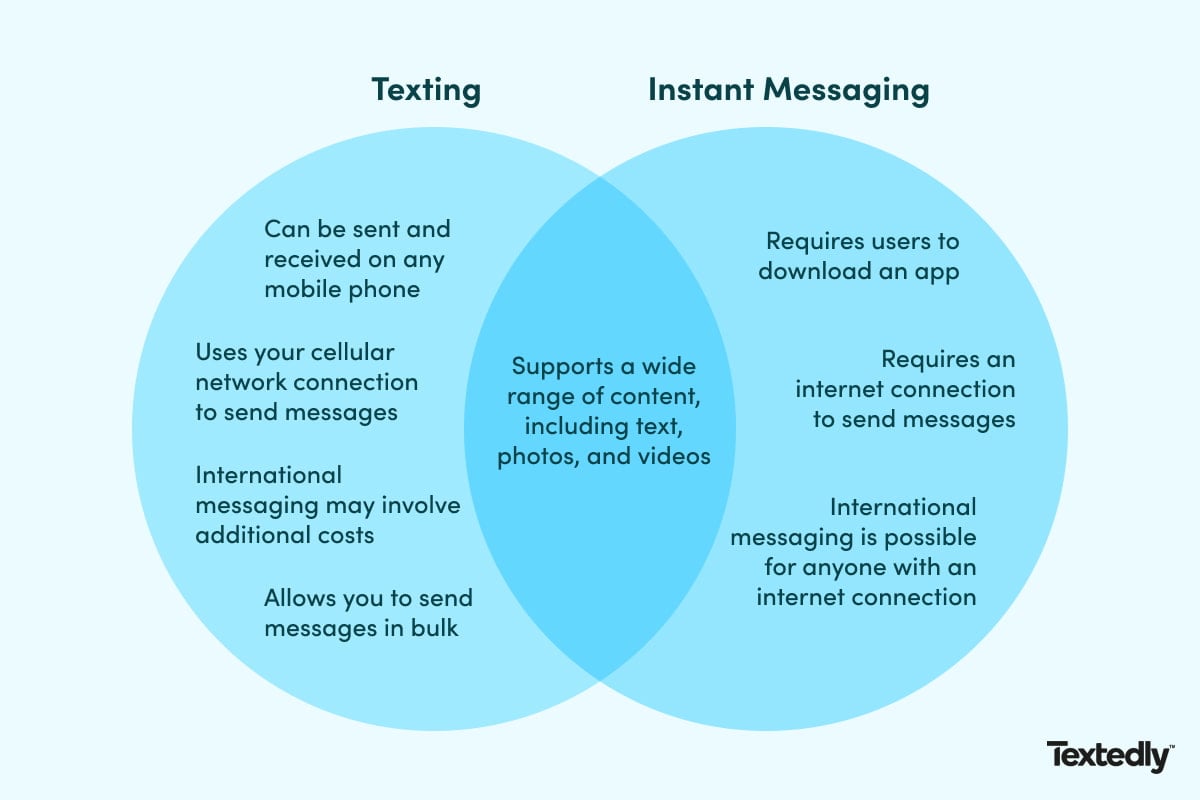 Is texting the same as instant messaging? Both instant messaging and texting have exploded in popularity over the last decade. As a result, many people now use the terms “texting” and “instant messaging” interchangeably, referring to both as “texting.” However, some key distinctions exist between the two.